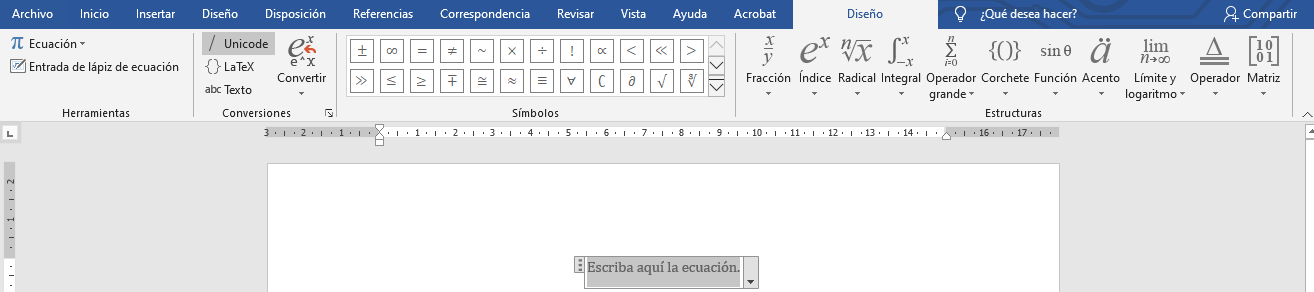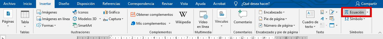 - Ve a Insertar → Símbolos → Ecuación.