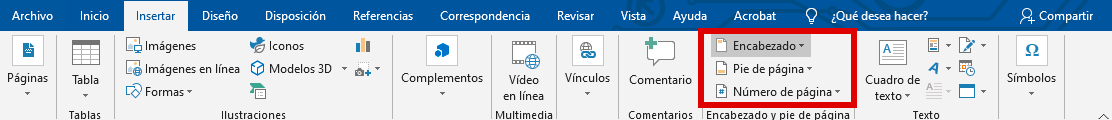- Insertar: ve a Insertar → Encabezado o Pie de página.